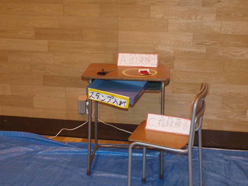 はるにれ実験教室2011第53回北海道大学大学祭の一企画として行いました。日時2011年6月5日(日) 11時〜14時 場所北海道大学 第1体育館 はるにれ実験教室「科学捜査で事件を解決せよ」ストーリー実験教室で使う大事なスタンプが無くなった! 我々は現場検証を行い、いくつかの手がかりを発見したが、まだ犯人特定には至っていない… 君たちが科学の力を使って犯人を特定し、スタンプを見つけ出してくれ! ![]() ↑容疑者は4人。それぞれの容疑者の特徴と、5つの科学捜査でわかったことから、犯人を特定しよう。 実験教室の流れ参加者は探偵となり、警察の科学捜査から情報を集め、推理をする。 見事 犯人がわかったら捜査本部に報告をし、さらに隠れている犯人を見つけて、スタンプを取り戻してもらう。 ![]() ↑まずは事件現場で、事件について説明を受ける。 ![]() ↑見つかった証拠は5つ。これを、科学の力で分析していこう。 ![]() ↑最後は、集めた証拠から犯人を推理しよう!犯人がわかったら、捜査本部に報告して犯人を見つけに行こう。 血液検出現場に残されていた赤いしみは…血? ルミノール反応を利用して、血液であるかどうか調べてみよう。 ![]() 赤いしみは、棚の上にあるペンキが垂れたものだった。 毛髪鑑別落ちていた髪の毛から何かわかるかな? 顕微鏡で観察してみよう。 ![]() ↑事件現場には3種類の髪の毛らしきものが。特徴をよーく観察してみよう。 指紋照合引き出しについていた指紋を調べてみよう! ニンヒドリン反応で浮かび上がらせ、観察してみよう。 ![]() ↑まずは練習として、自分の指紋を観察する。 暗号解読現場に暗号が残されていた!解読してみよう! ![]() 声紋分析ボイスレコーダーに録音された声から証拠を見つけよう。 ![]() ↑iPadを使って、ボイスレコーダーに録音された声の特徴を調べよう。 参加者の感想・血が青白く光ったのがびっくりした。 ・かみの毛のじっけんがおもしろかった。 ・指紋がとれていい経験になった ・とくに暗号解どくがよく考えられていると思った。 ・学びながらたのしめたので良かったです! ・説明も子どもでもわかりやすくしていて、スタッフの服装も雰囲気がでていたので良かったと思います。 (会場出口に設置した感想ノートより抜粋) ・説明も子どもでもわかりやすくしていて、スタッフの服装も雰囲気がでていたので良かったと思います。 (会場出口に設置した感想ノートより抜粋) FirstUpload 13/04/29-20:35 LastUpdate 14/12/17-14:42 Tweet |